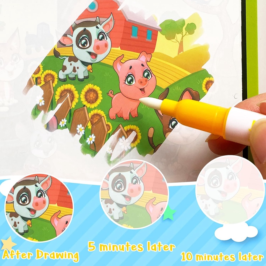 كتاب التلوين السحري بالماء للأطفال بدون حبر، مناسب للاستخدام مرات متعددة، يساعد على تنمية الإبداع والتركيز بدون فوضى أو اتساخ، مناسب من عمر سنة ونصف.